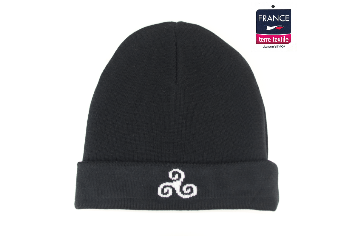 Bonnet double noir Triskel écru