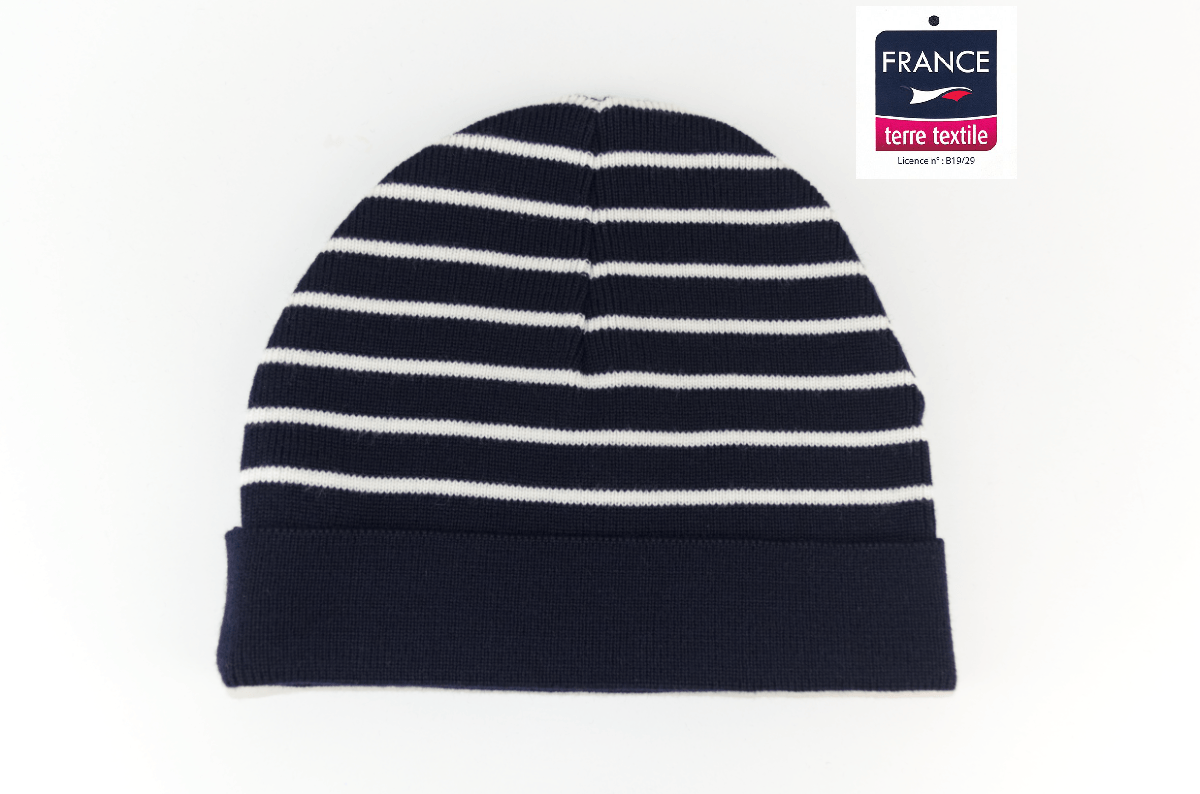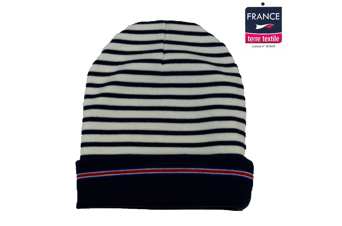 Bonnet double rayé marine/écru